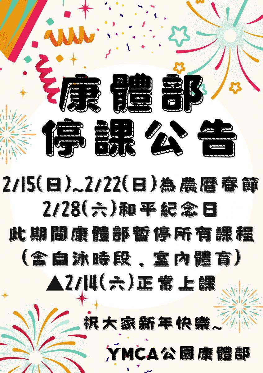 ★正常上課:2/14(六)全天正常 臉書訊息:https://www.facebook.com/ymcaparksport