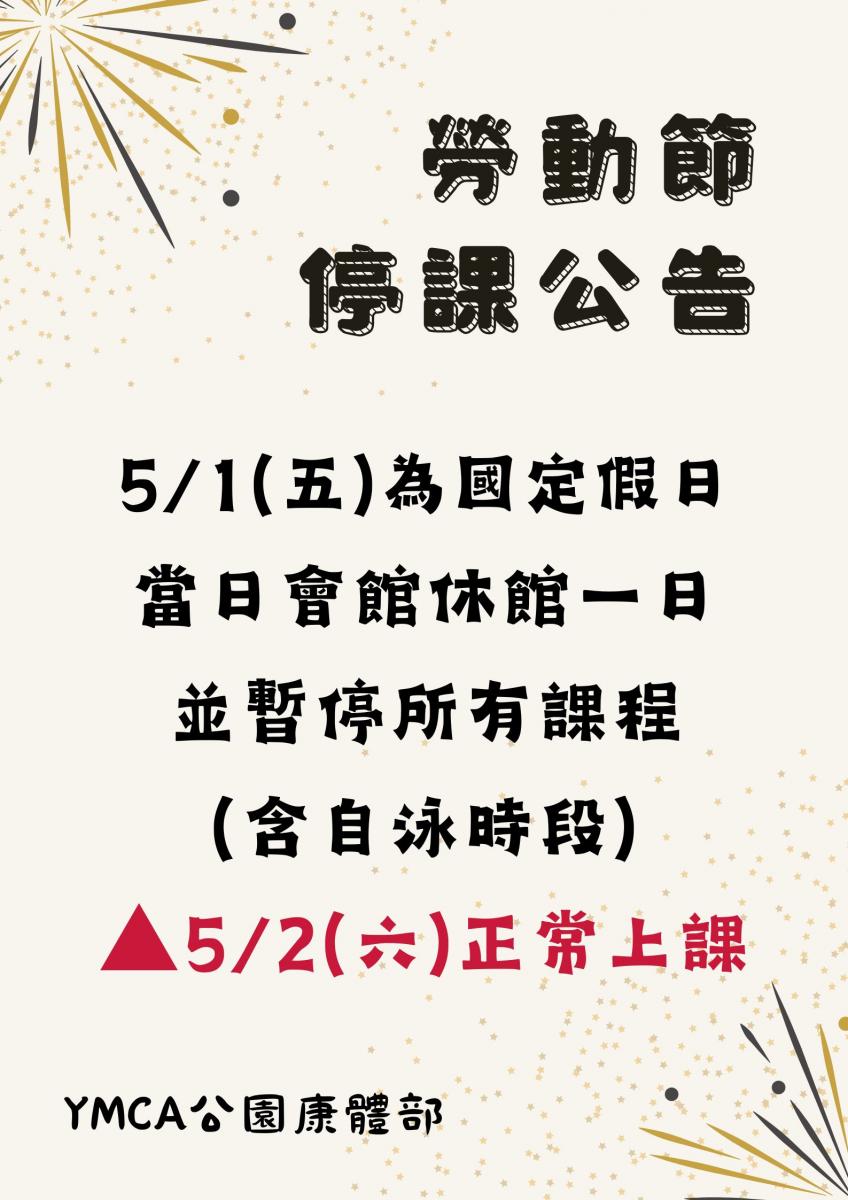 ★正常上課:5/2(六)全天正常 臉書訊息:https://www.facebook.com/ymcaparksport