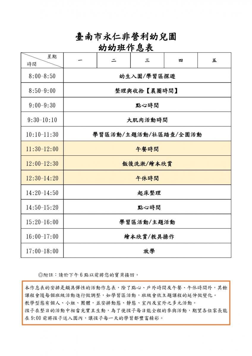 / 作息表 / 幼幼班作息表