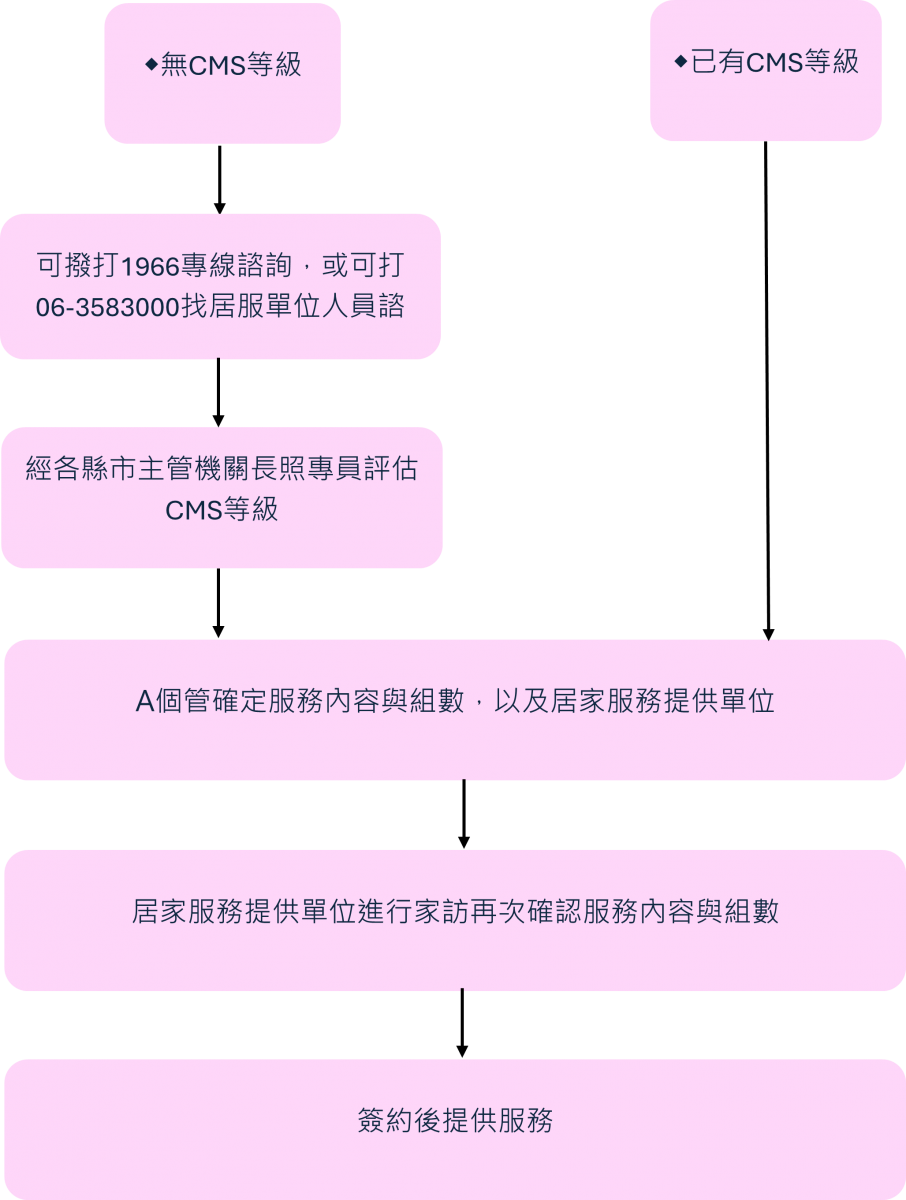 1.若沒有長照資格者可先撥打1966專線諮詢與申請長照資格