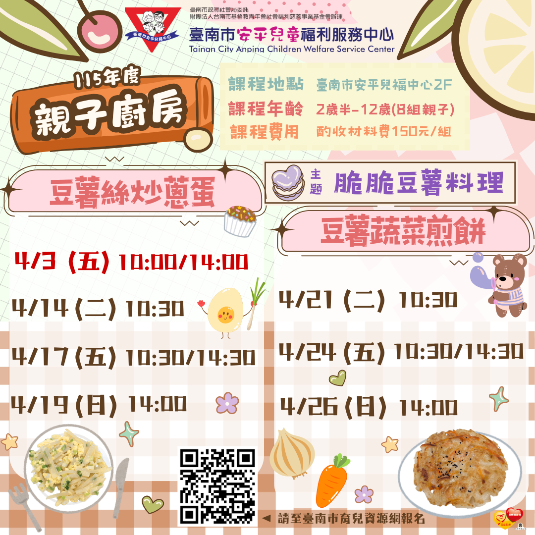 2026/03/23【活動報名|安平兒福中心 115年4月親子廚房】