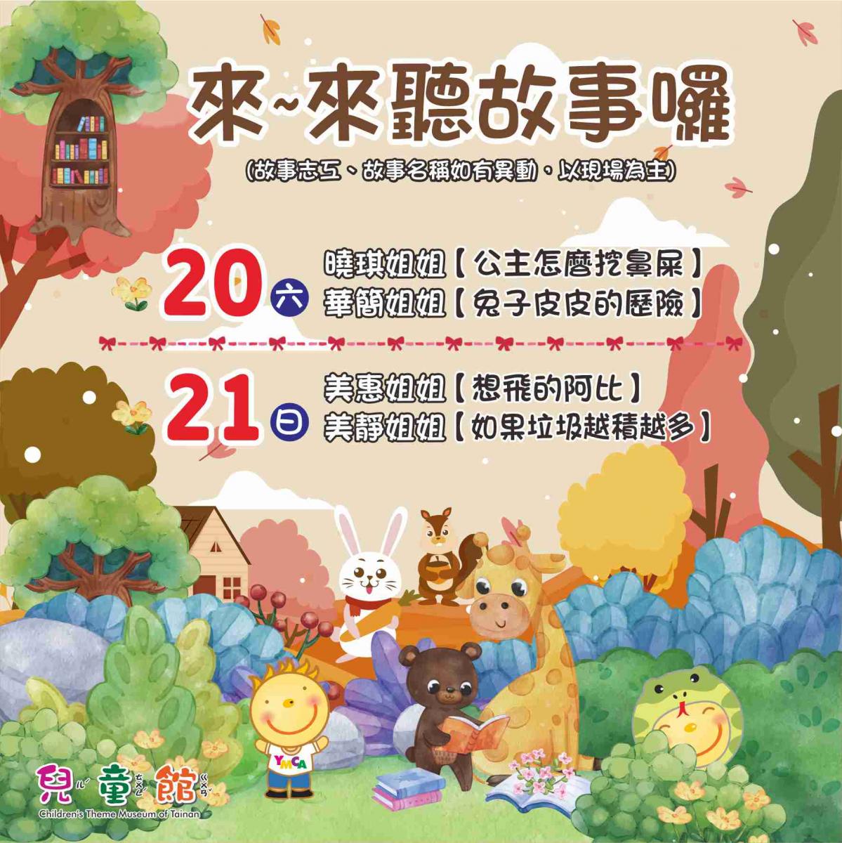 9/20(六)上午11:00,曉琪姐姐「公主怎麼挖鼻屎」、下午2:00,華簡姐姐「兔子皮皮的歷險」。