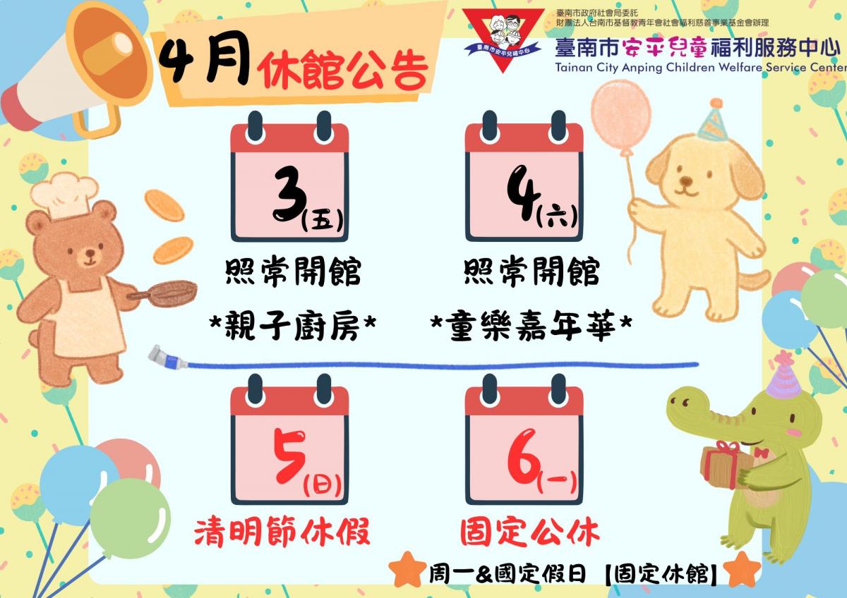 2026/03/29【清明連續假期休館公告】