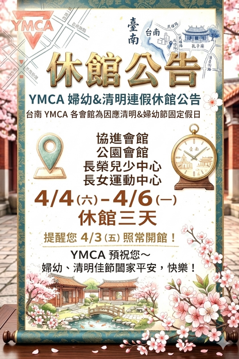 YMCA 婦幼&清明連假休館公告