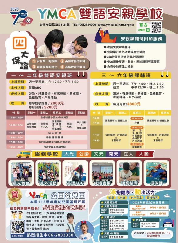 必修才藝:游泳、兒童美術、有氧律動、多媒體、品格教育、戶外活動