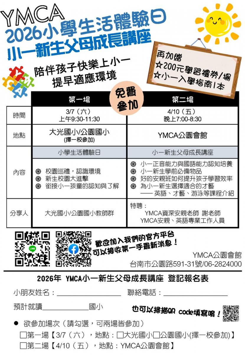 2026年小一新生父母成長講座