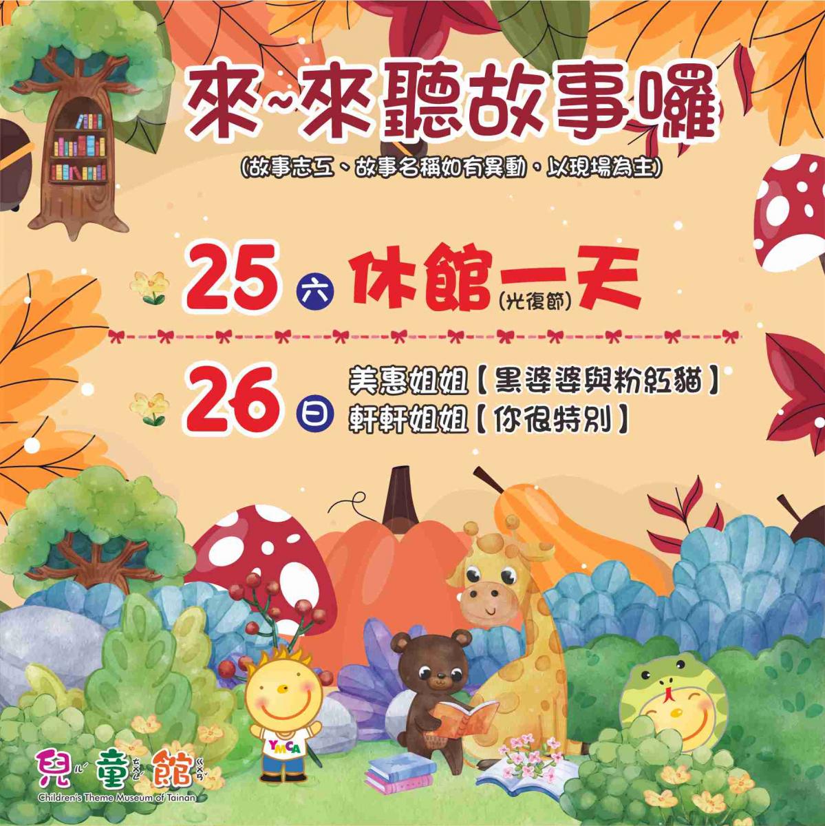 10/26(日)上午11:00,美惠姐姐「黑婆婆與粉紅貓」、下午2:00,軒軒姐姐「你很特別」。