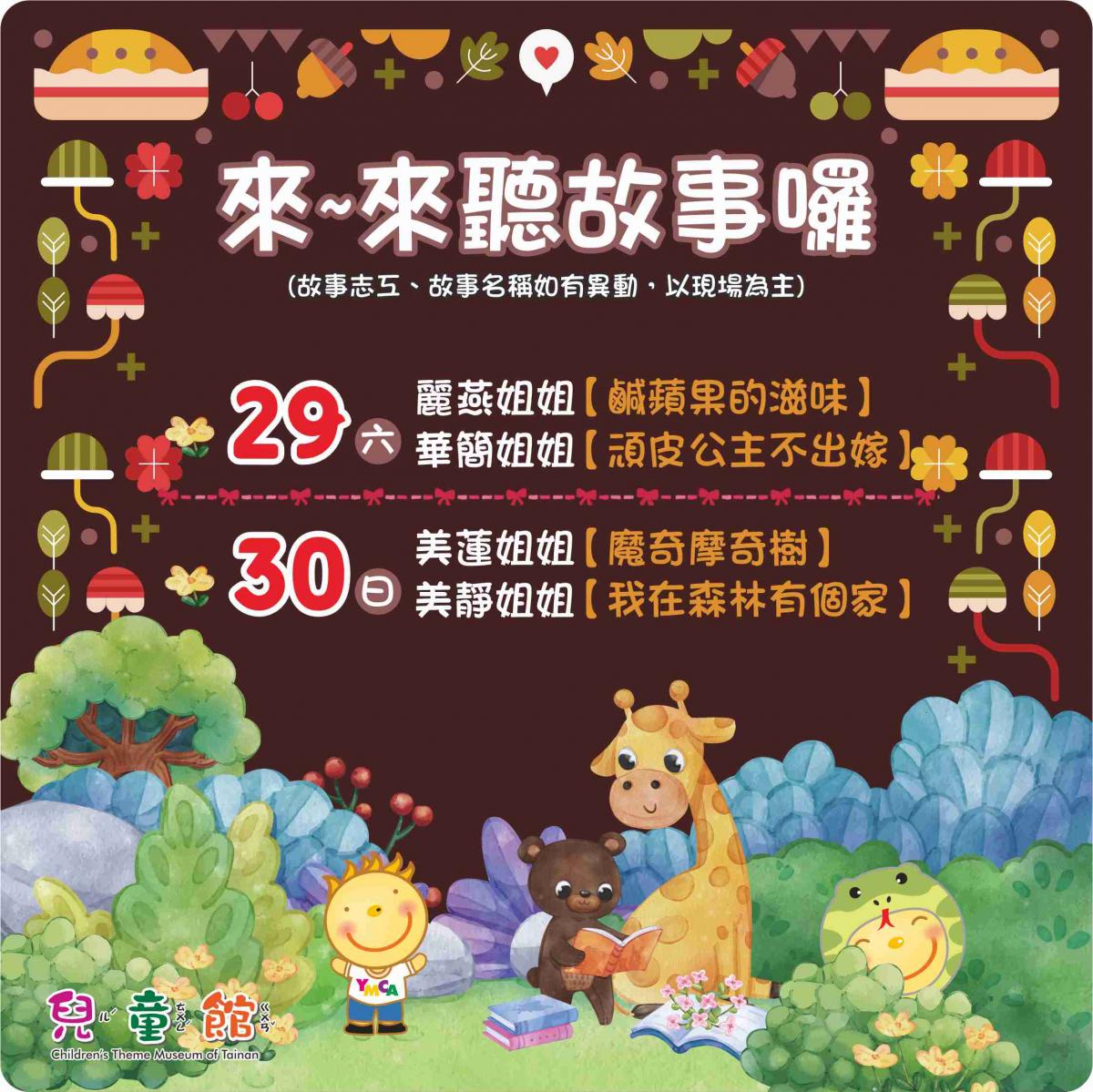 11/29(六)上午11:00,麗燕姐姐「鹹蘋果的滋味」、下午2:00,華簡姐姐「頑皮公主不出嫁」。