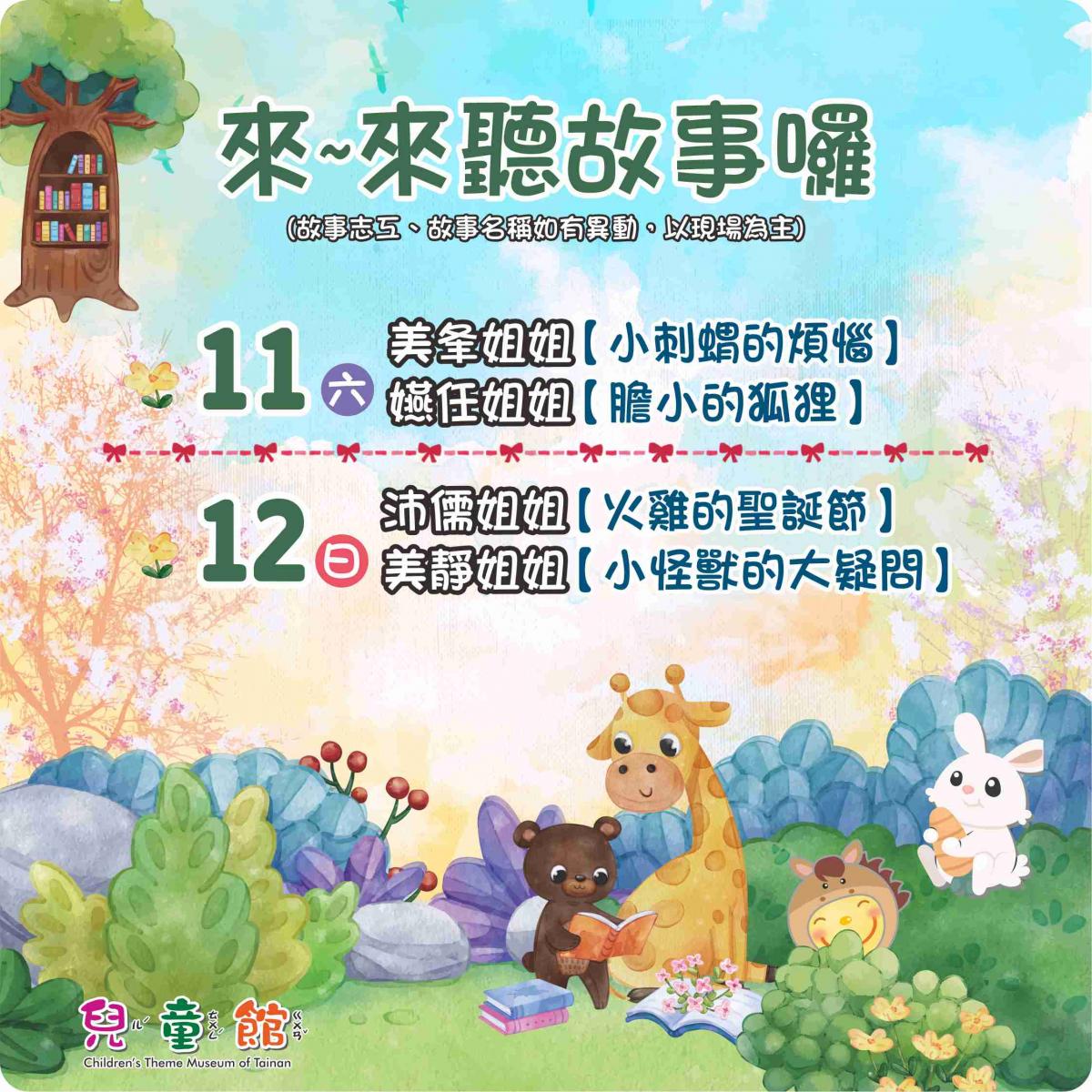 4/12(日) 11:00,沛儒姐姐「火雞的聖誕節」、下午2:00,美靜姐姐「小怪獸的大疑問」。