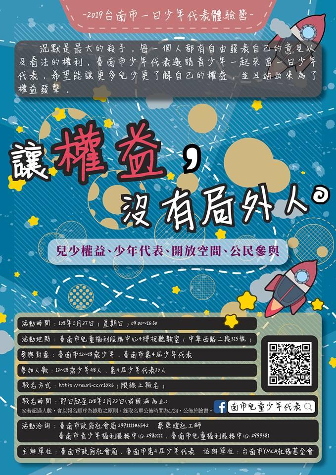 2019/01/18好康逗相報-臺南市少年代表一日體驗營 !!!「讓權益沒有局外人」來了 !!!