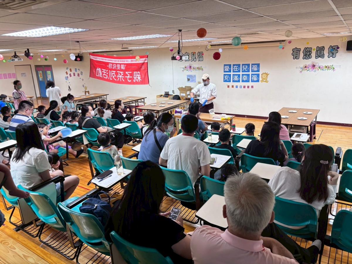 在老師的帶領下,小手靈巧地將牛軋糖夾入餅乾中,巧克力融化後輕輕塗抹,再將彩色MM豆排列成花朵創意圖案,每位孩子都展現了專屬的小巧思。完成的花餅不僅美味,更滿載親子合作的溫暖回憶。