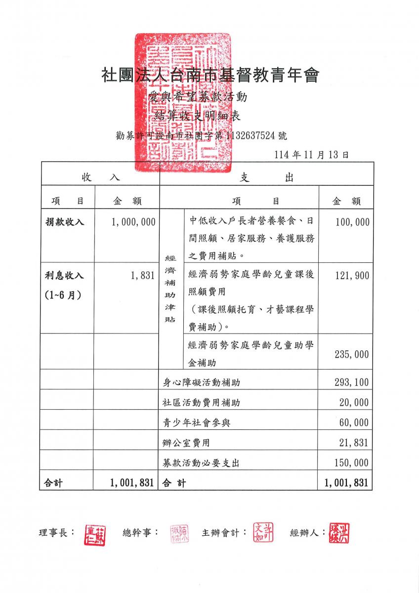 114年度「愛與希望」~募款活動成果分享